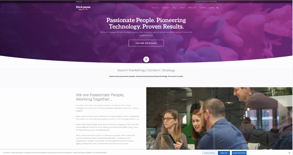Stickyeyes has long been part of Leeds’ digital landscape and continues to integrate AI across content strategy, SEO, and campaign analysis. The agency’s size allows it to experiment with in-house tools, making it ideal for larger clients seeking enterprise-level solutions.