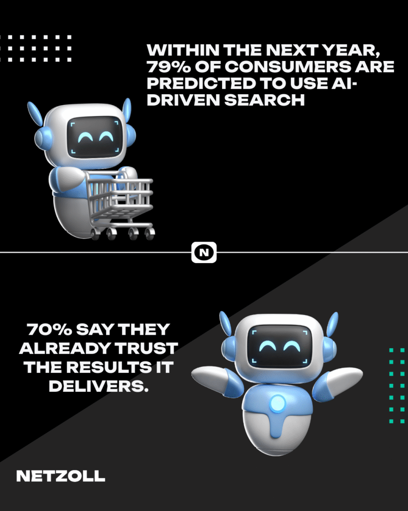 Within the next year, 79% of consumers are predicted to use AI-driven search, with 70% saying they already trust the results it delivers.