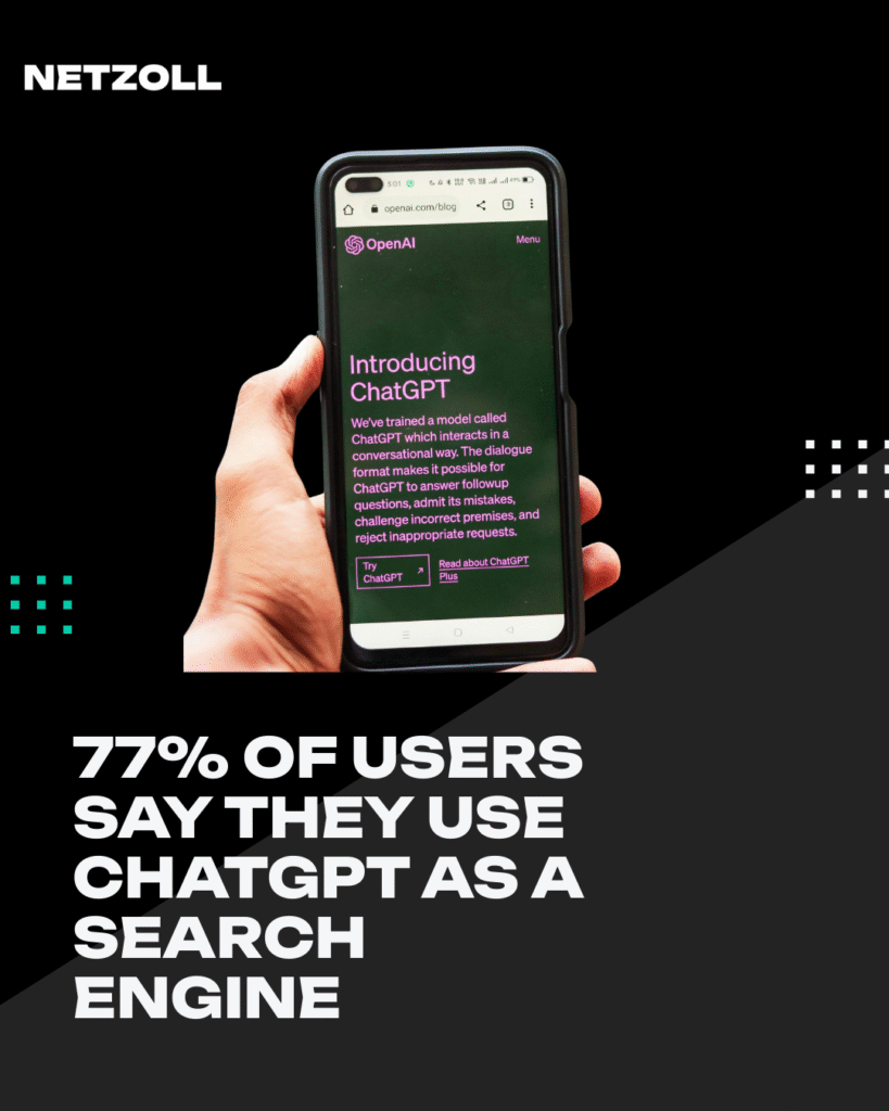 77% of users say they use ChatGPT as a search engine