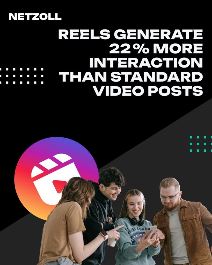 If you’re not using Reels, you’re giving away nearly half the screen time. Short-form video content is dominating. Keep an eye on Instagram stats for each post to see what performs best and use tools to monitoring their success. (Source)