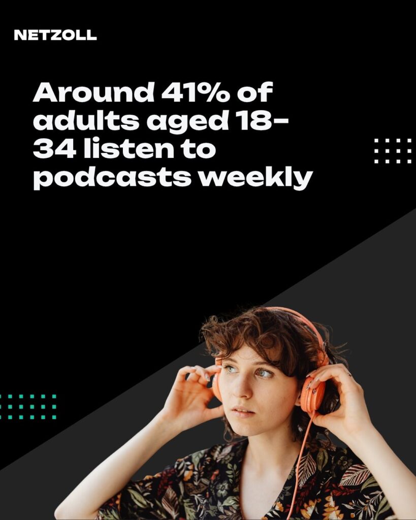 Around 41% of adults aged 18–34 listen to podcasts weekly