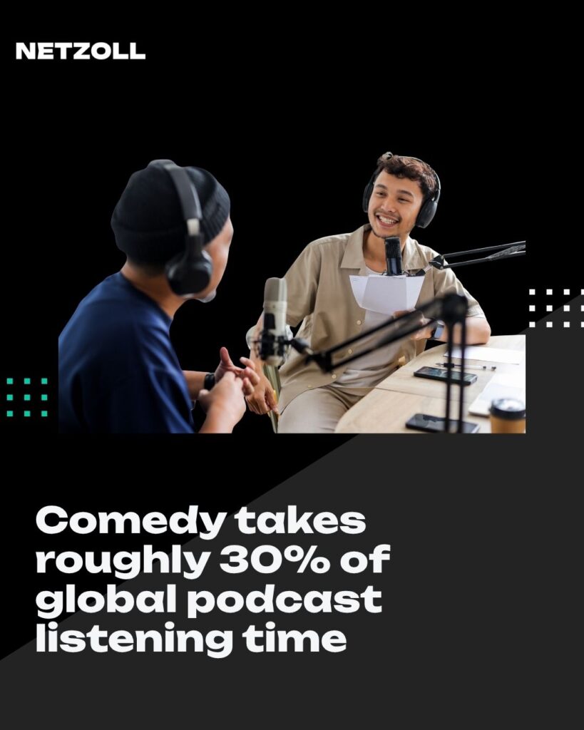 Comedy takes roughly 30% of global podcast listening time