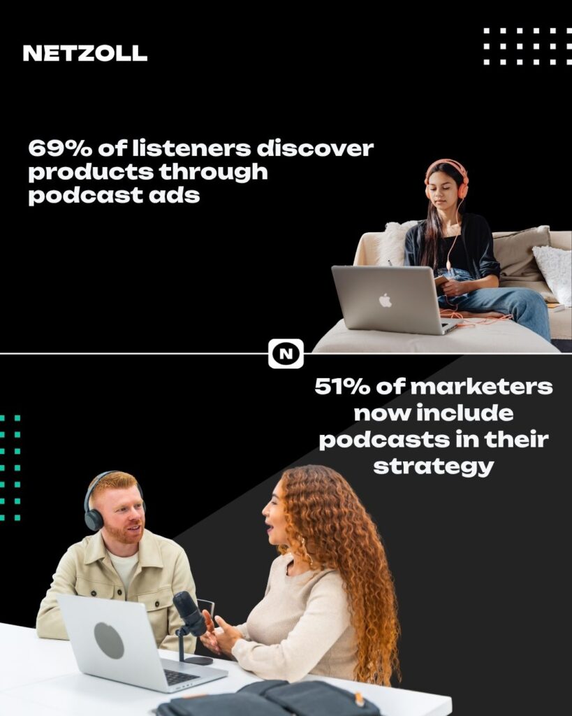 69% of listeners discover products through podcast ads