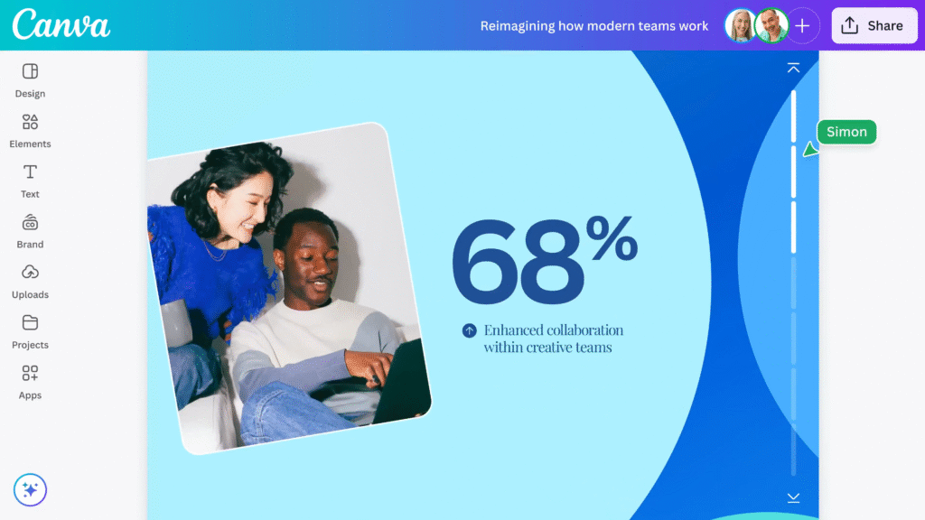 One of the most useful features of Canva Docs is its collaboration system. Team members can comment, suggest edits, and co-edit the document in real time, which helps keep everyone aligned. Once your brief is ready, you can share it as a live link or export it as a PDF or presentation-ready file, ideal for sharing across teams or presenting to clients.
